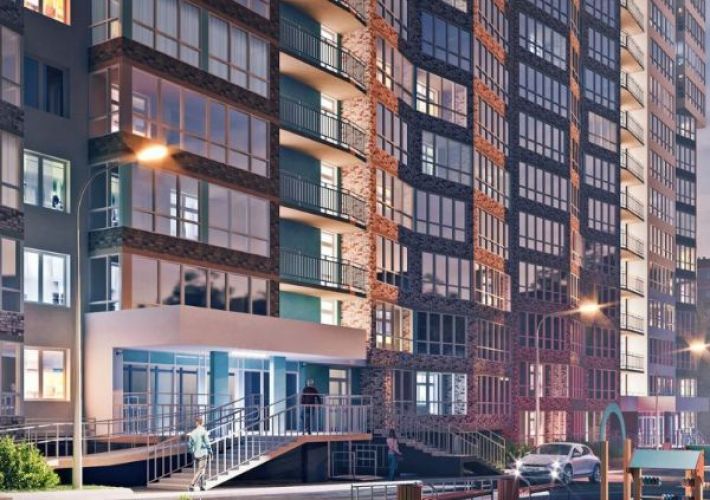 25-этажное здание комплекса состоит из 2 секций. Дом возводится по монолитно-каркасной технологии с кирпичным заполнением стен. Оформление фасада запроектировано в светлых тонах с остекленными балконами и лоджиями. В каждой секции предусмотрено по 3 лифта грузоподъемностью 1000 кг.