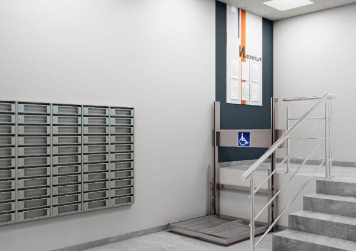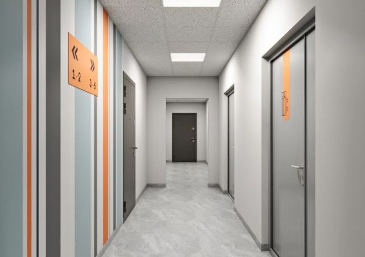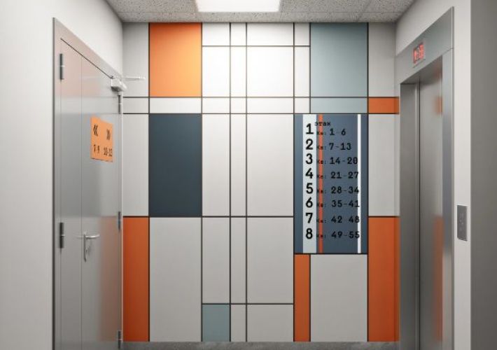 Современный и минималистичный холл. Сочетание цветов в отделке смотрится выигрышно и лаконично. Уверены, что входная группа в строящемся доме станет местом притяжения соседей, а жильцы почувствуют комфорт родного дома, лишь переступив порог парадной.