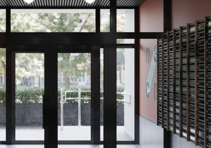 Дизайнерские холлы в ЖК Ближе — это продуманный подход к комфорту и высокая эстетика. Безбарьерный вход в подъезд будет удобен для всех. Входная группа с витражным остеклением — это не только стильно, но и безопасно: всегда видно, что происходит внутри и снаружи. А для дополнительной безопасности в ЖК предусмотрена комната консьержа.