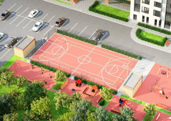 Во дворе будет оборудована удобная и красивая детская площадка, рассчитанная на детей разных возрастов, универсальная спортивная площадка и воркаут.