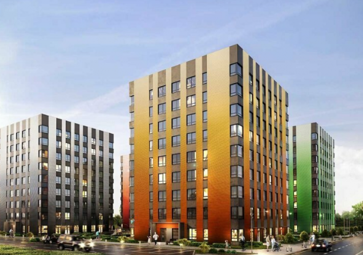 Девятиэтажные дома в жилом комплексе Александрия аккуратно вписаны в природный ландшафт. Лаконичная геометрия зданий, богатая палитра природных оттенков на рустованных фасадах зданий, ритмичное расположение окон в доме создают уникальную современную композицию цвета и пространства.