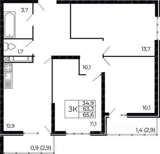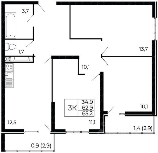 - 65.2 - 65.7 м2