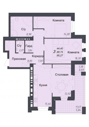 - 106,89 - 114,94 м2