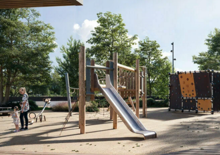 На участке в 1 га раскинется уютный сквер с лиственными и хвойными деревьями, малыми архитектурными формами и современным благоустройством территории.