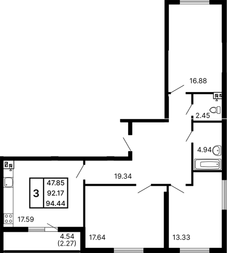 - 93,2 - 94,9 м2