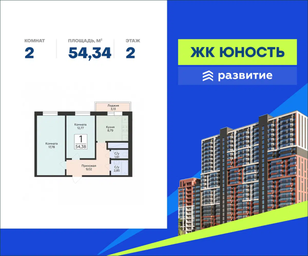 - 54,3 - 66,1 м2