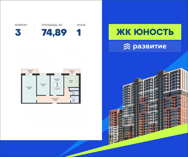 - 74,9 - 80,9 м2