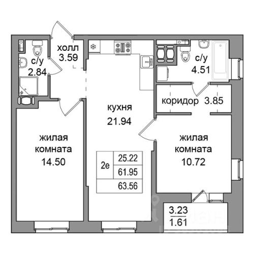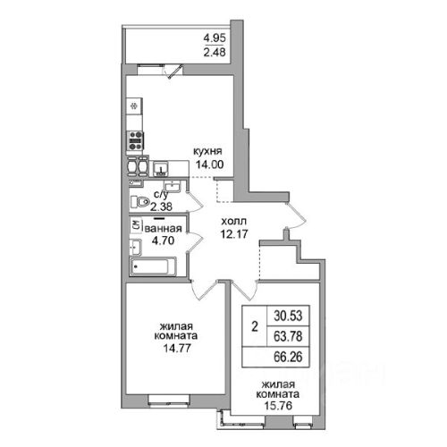 - 34,86 - 66,26 м2