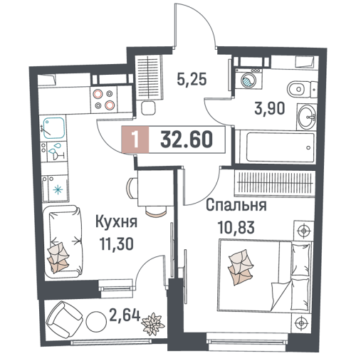- 30,3 - 44,5 м2