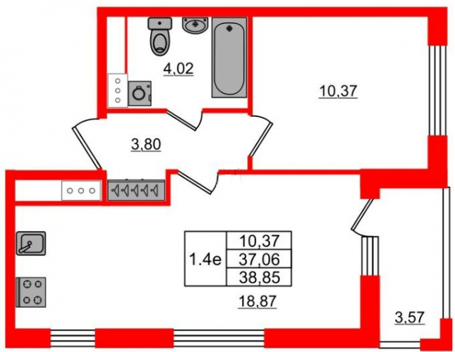 - 30,71 - 37,23 м2