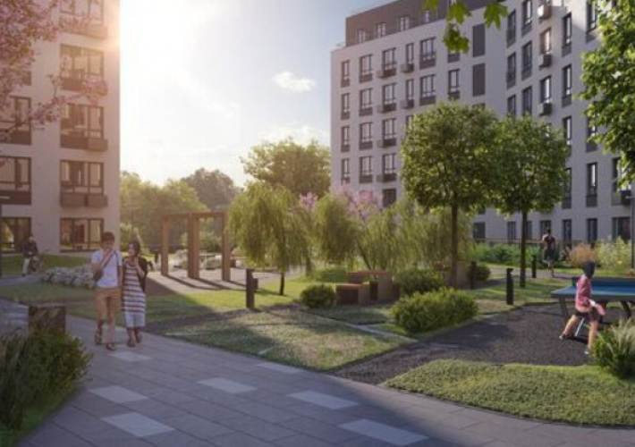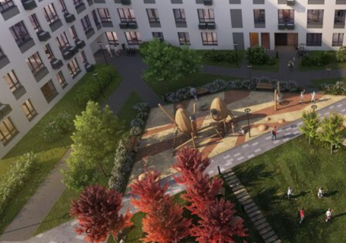 Внутренняя территория пронизана сетью аллей, идущих вдоль зеленых островов, где разместились современные детские эко-площадки и workout зоны, пространства для рекреации и уединения. Масштаб благоустройства – более 15 тысяч квадратных метров, в рамках которого большое внимание уделено растениям, формирующим особый микроклимат. Приватное пространство внутреннего двора с сенсорными садами, собственным променадом и кленовой рощей, камерными зонами для пикника и отдыха, детскими и спортивными площадками создает неповторимую атмосферу, заряжающую энергией на новые свершения.