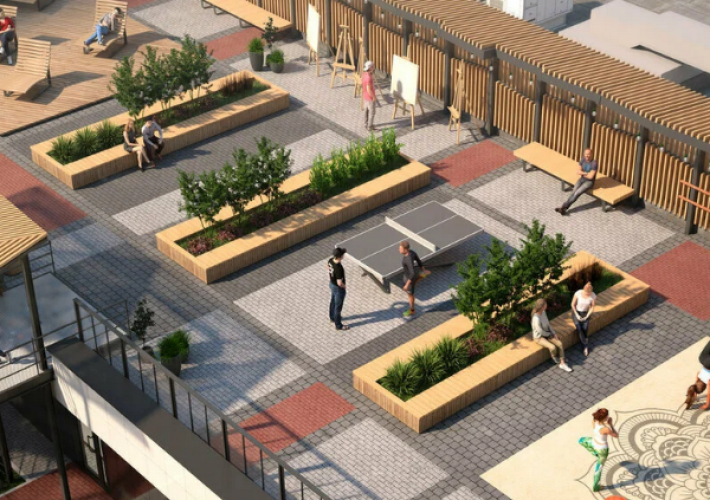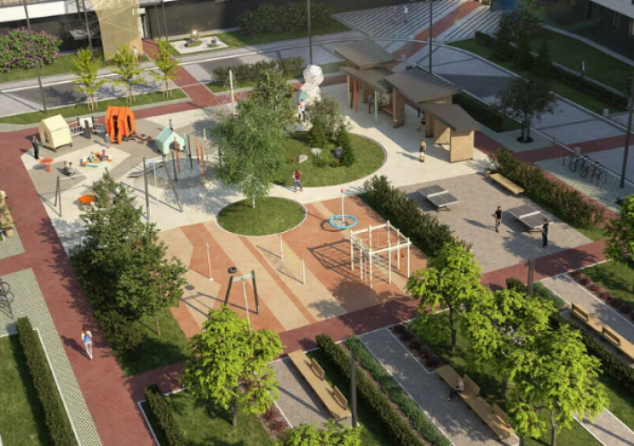 В ЖК Графика на крыше коммерческих помещений спроектирована зона отдыха с площадкой для йоги, установлены скамейки, шезлонги и беседки. По всей территории комплекса ведется видеонаблюдение. Дворы обустроены по концепции «двор без машин». На придомовой территории проведено озеленение, посажен яблоневый сад, спроектированы современные игровые и спортивные площадки. Для автовладельцев оборудован подземный паркинг.
