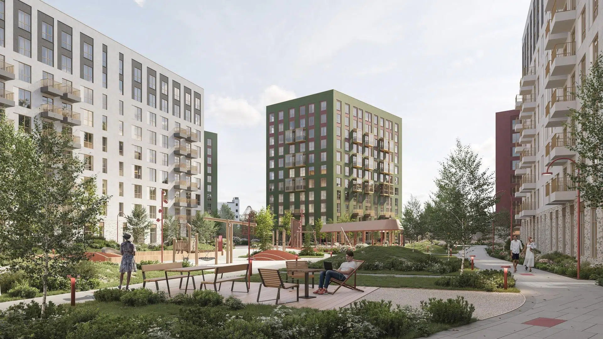 Три школы и восемь детских садов будут построены прямо на территории квартала. На первых этажах домов откроются магазины, салоны красоты, кабинет врача.