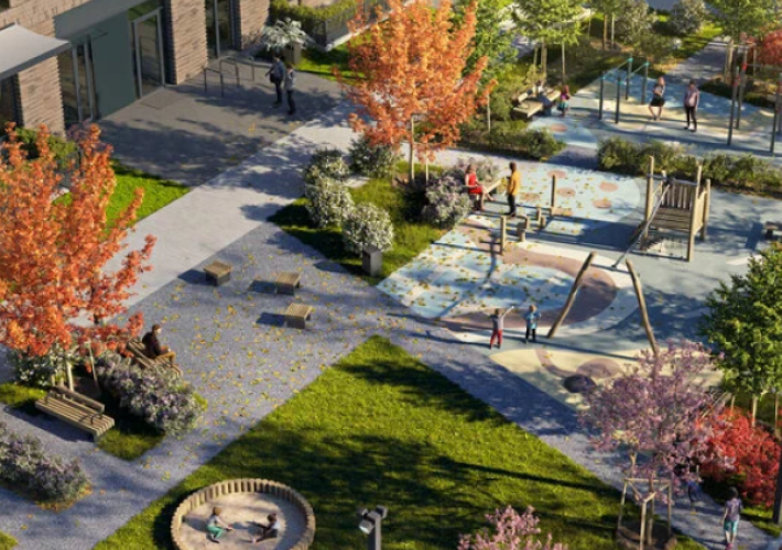 Во дворах будут закрытые парки с детскими площадками и местами для отдыха, а на подземном этаже — паркинг с удобной навигацией. Для детей на территории жилого квартала откроется школа. Между домами протянется пешеходный бульвар для прогулок и отдыха, а для велосипедистов предусмотрены специальные дорожки и парковки.