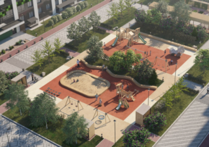 На территории ЖК спроектировано 2 детских сада и физкультурно-оздоровительный комплекс, а также, многоуровневый паркинг. На первых этажах находятся коммерческие помещения. На придомовой территории расположены детские площадки, места для дрессировки собак, пешеходные аллеи и велодорожки. Озеленение территории производится по специально разработанному ландшафтному дизайну. На территории комплекса предусмотрена система видеонаблюдения, двор закрыт от машин.