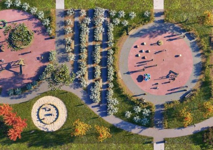 Современные и безопасные детские площадки. Оборудование на них не похоже на ракеты, корабли и паровозики - у него простые или абстрактные формы, которые помогают развивать фантазию и придумывать новые игры. Такие площадки интересны детям любого возраста. А натуральные материалы, из которых они сделаны, помогают развивать сенсорные ощущения. Безопасное покрытие на площадках защитит ребёнка от травм во время игры.