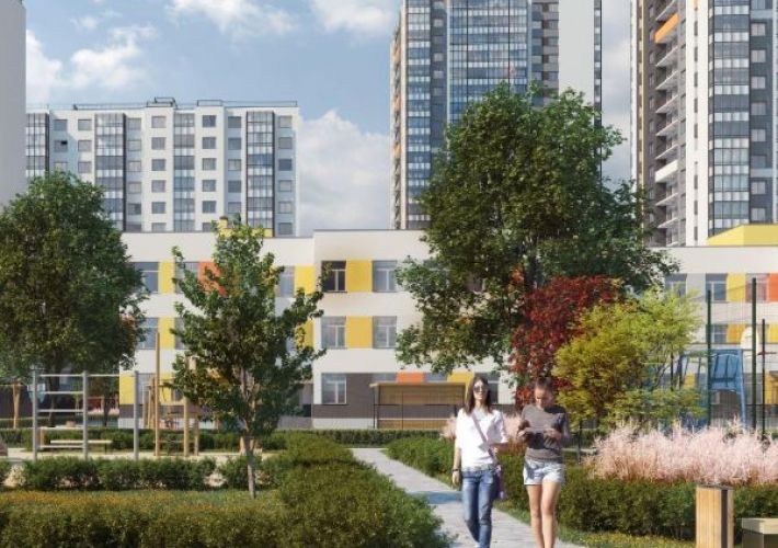 На территории ЖК предусмотрены газоны и кустарники, скамейки для отдыха, детские площадки с антитравматическим покрытием, спортивные площадки для игр и общей физической подготовки.