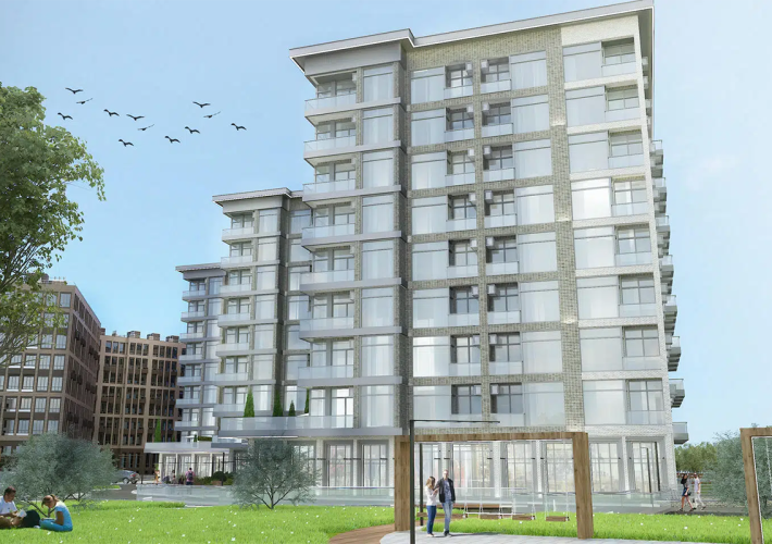 8 –этажный жилой комплекс размещен на первой линии от озера и состоит из 3 корпусов со встроенными на 1 этаже нежилыми помещениями.