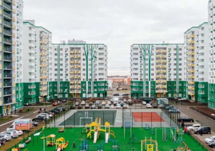 Благоустроенная территория с эко-парковками, множеством детских и спортивных площадок.