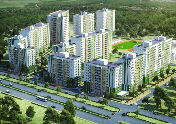 ЖК Мичуринский - это 7 корпусов монолитно-каркасной технологии строительства с переменной этажностью и яркими фасадами, просторными входными группами, где отведены помещения для размещения службы консьержа и хранения колясок и спортинвентаря. На выбор в готовых квартирах представлены три варианта отделки под ключ.