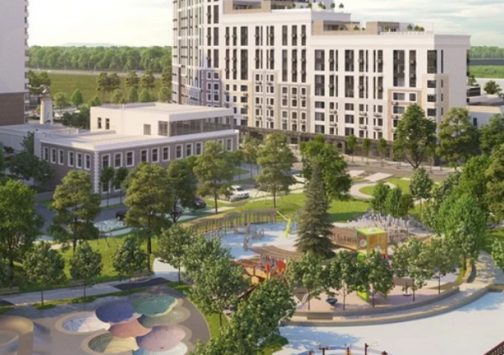 Закрытые внутренние дворы каждого дома также включают детские и спортивные площадки, места отдыха, озеленение.