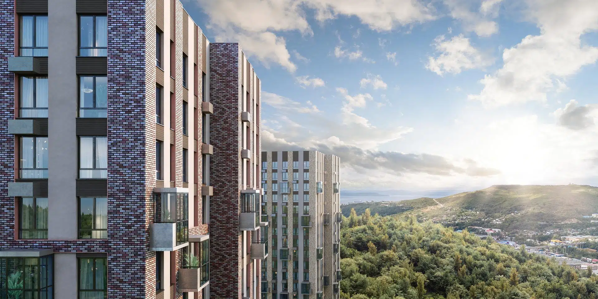 В жилом комплексе Сабанеева 125 вы ежедневно будете наслаждаться видами сопок. Холмистый рельеф защищает территорию от ветра.