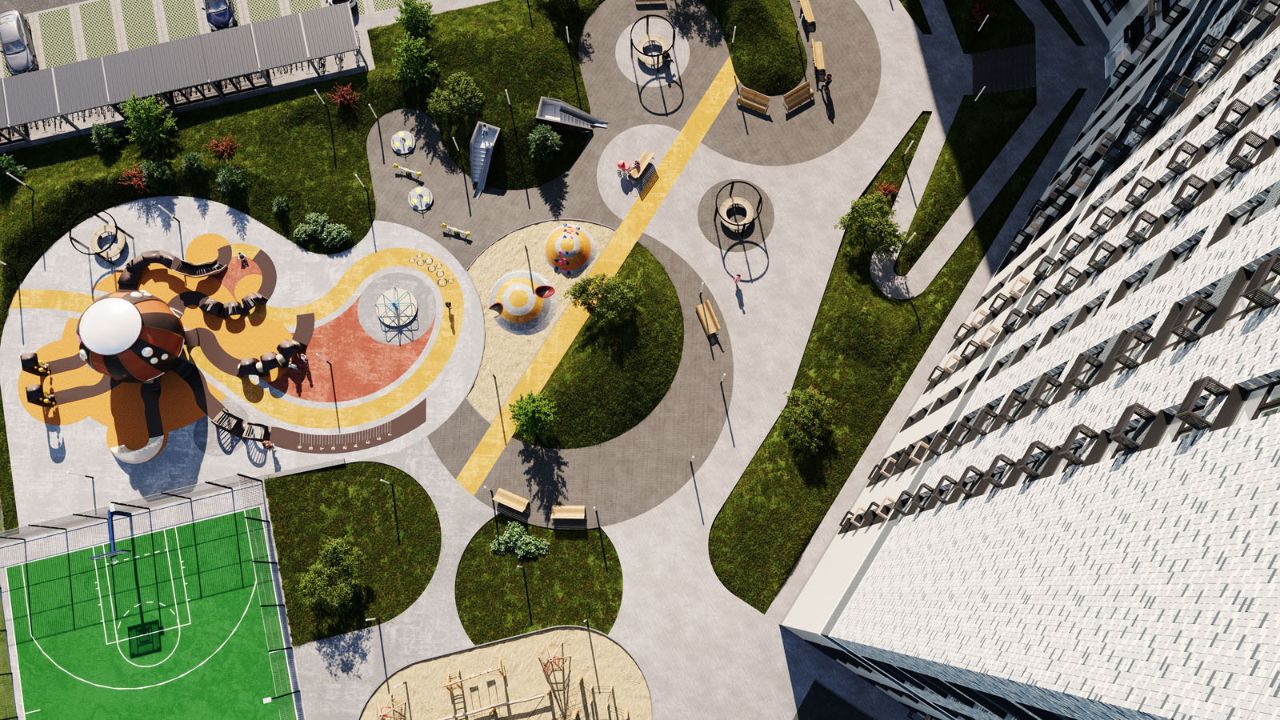 Современные дома бизнес-класса с прилегающей территорией обустроенной по принципу "Двор без машин" Двор будет закрытым и полностью свободным от автомобилей и посторонних людей с множеством современных элементов благоустройства.