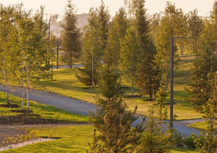 Для ежедневных прогулок жильцов девелопер выполнил благоустройство прилегающей к кварталу территории в ландшафтном дизайне. Здесь будет парк с аллеями для прогулок, зоны отдыха, смотровые площадки и деревянные мостики для прохода по лугам. Для велопрогулок проложены асфальтовые дорожки.