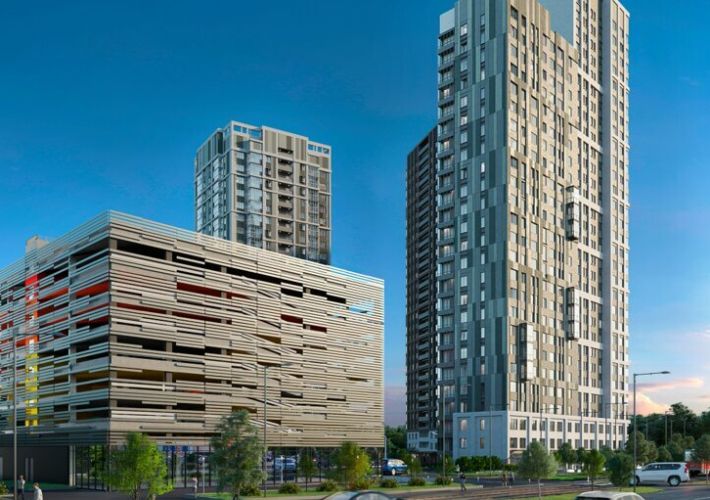 Запроектирован отдельностоящий паркинг на 297 мест с видеонаблюдением и системой пожаротушения, на первом этаже запланированы коммерческие помещения.