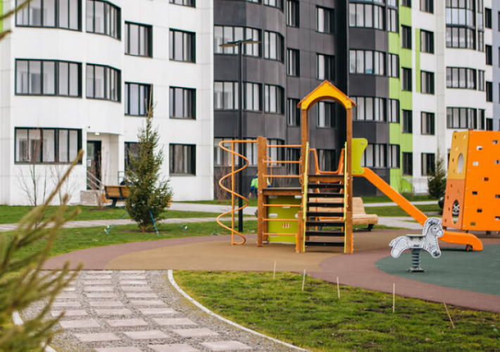 Согласно проекту дворовый периметр ЖК предусмотрен закрытым для посторонних. Внутренний двор оборудуется детскими игровыми площадками и спортивными тренажерами на безопасном покрытии, местами отдыха со скамейками. Озеленение участка выполняется в виде посадки деревьев, кустарников, газонов и цветников.