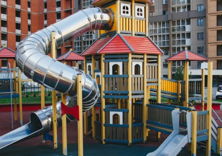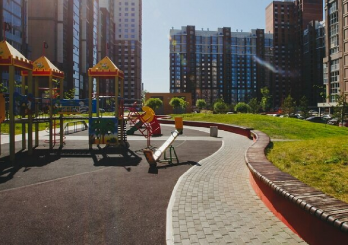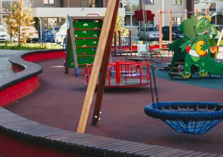 Для детей: детские площадки с безопасным резиновым покрытием.