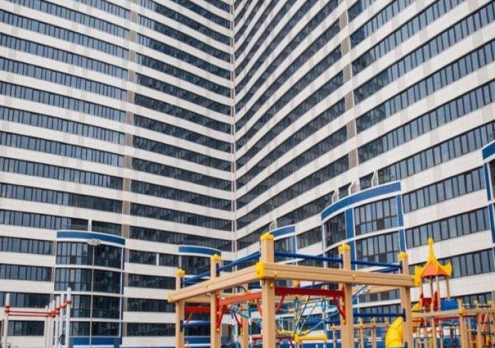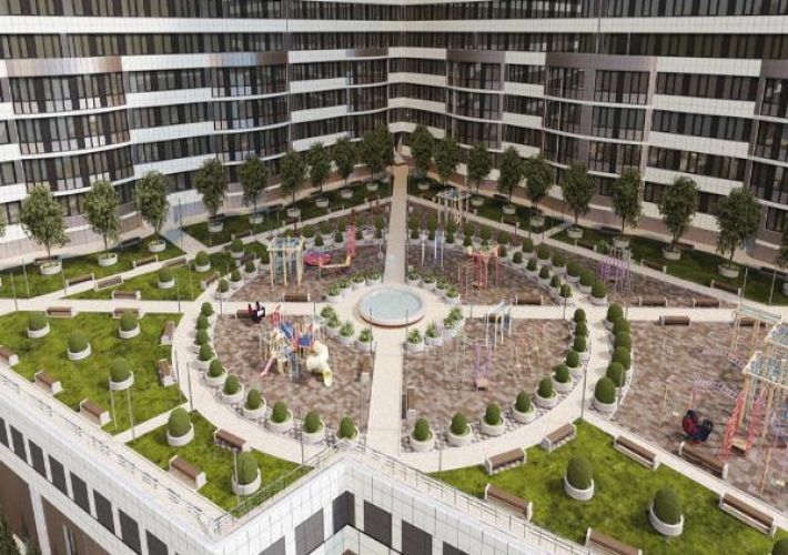 - большая закрытая зона на уровне 3 этажа с озеленением, детскими игровыми зонами и местами отдыха;