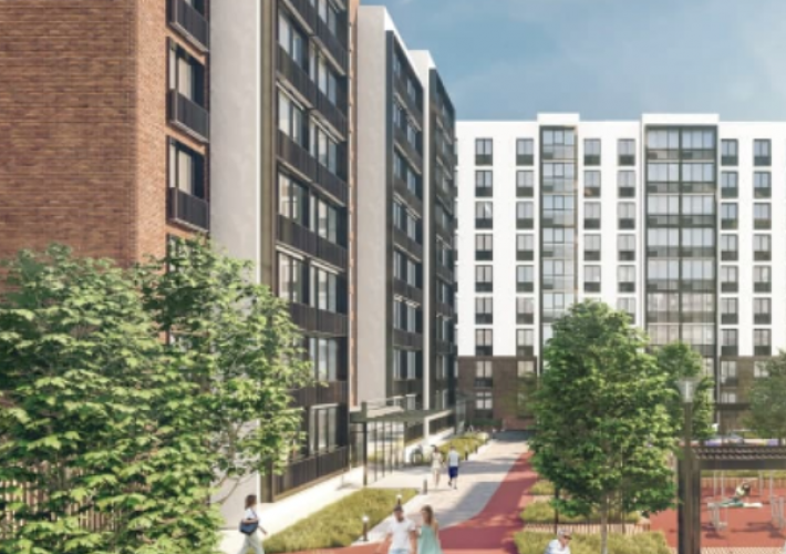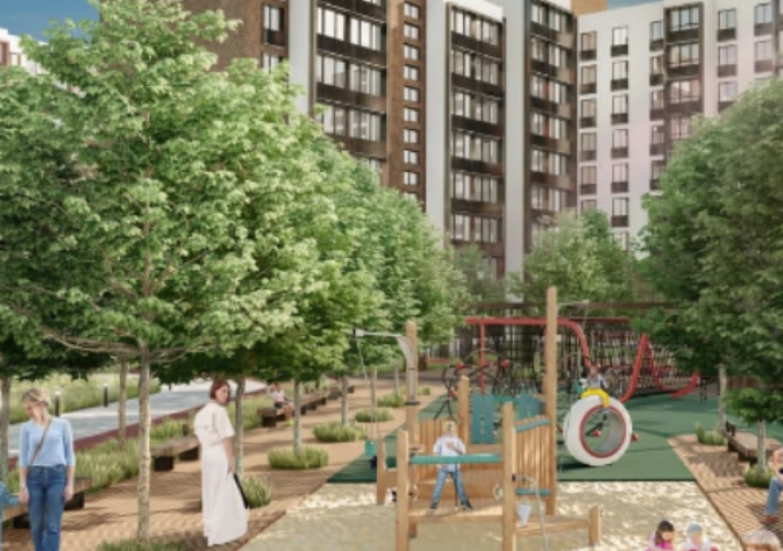 На территории комплекса выполняется устройство детских и спортивных площадок, зон для отдыха, озеленение и оснащение системой видеонаблюдения.