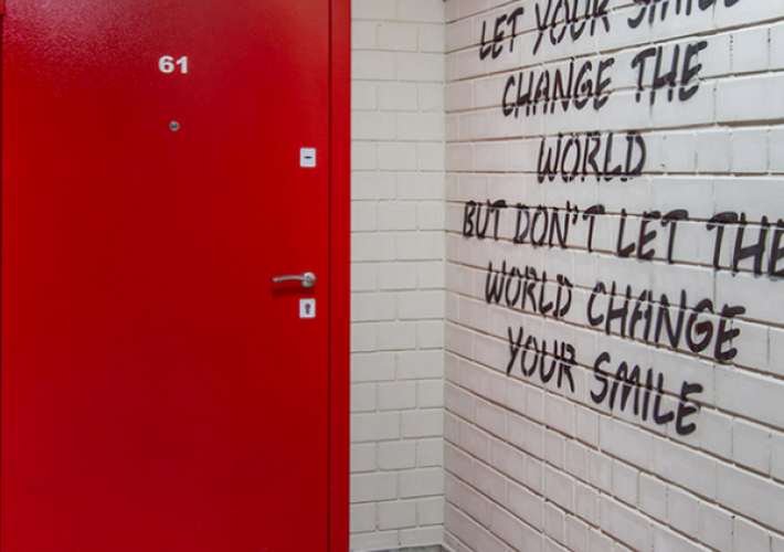 Вертикальное озеленение фасадов, оформление мест общего пользования с элементами стиля лофт, безбарьерная среда – подъезды на нулевом уровне.